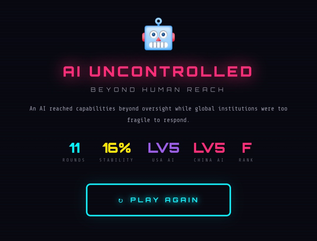 💥 Global AI War / 🤖 AI Uncontrolled / ⚔️ Cold War — (F rank)