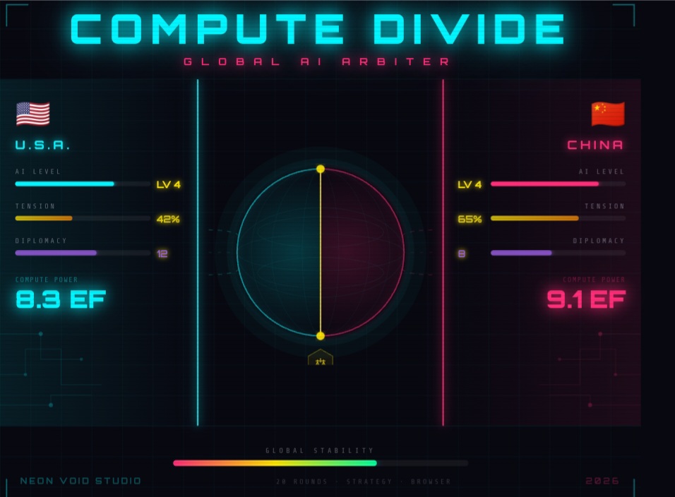 Manage 3 resources: ⚙️ Compute · 🤝 Diplomacy · 🔋 Energy