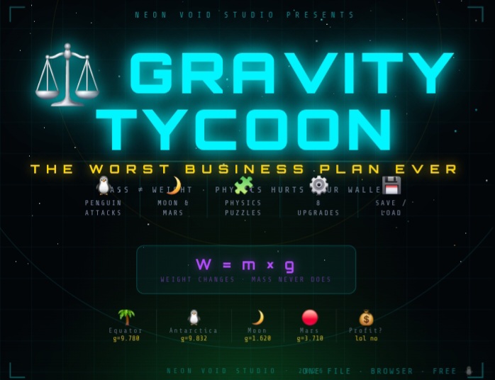 โ๏ธ GRAVITY TYCOON — The Worst Business Plan Ever